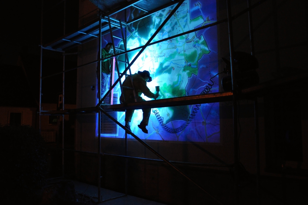 - Logo na elewacji, malowanie znaku graficznego na budynku