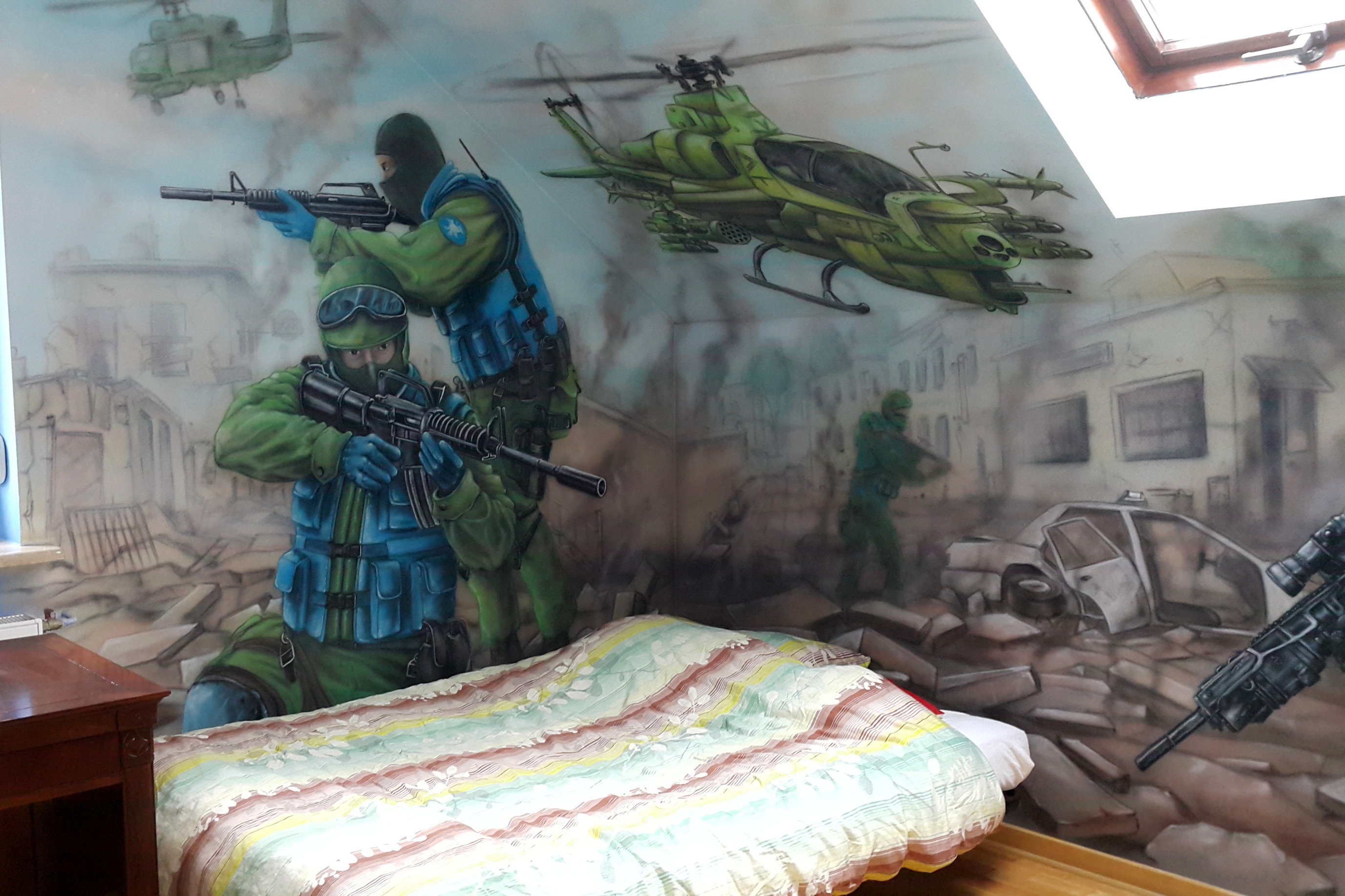 - Malowanie sali zabaw, aranżacja ścian w bawialni, malowanie graffiti
