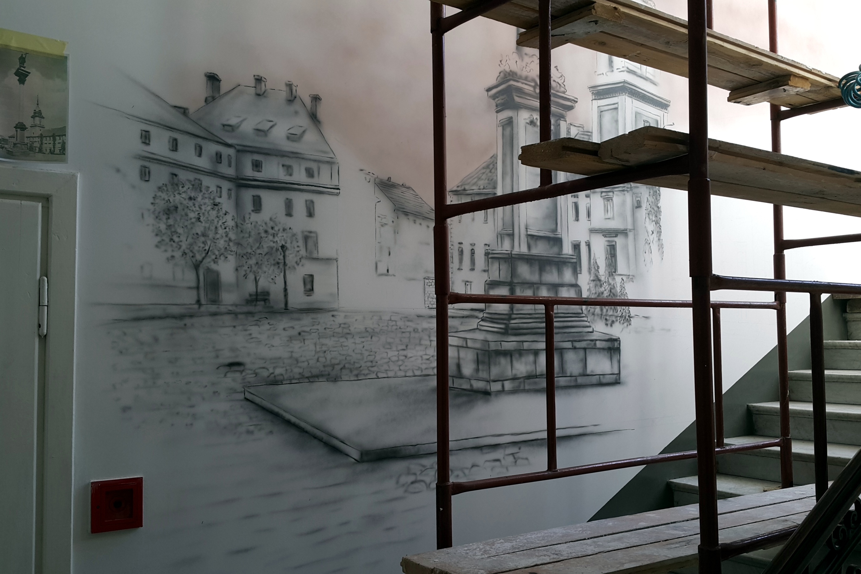 Aranżacja ściany w sali językowej. Mural jako pomoc dydaktyczna w sali językowej