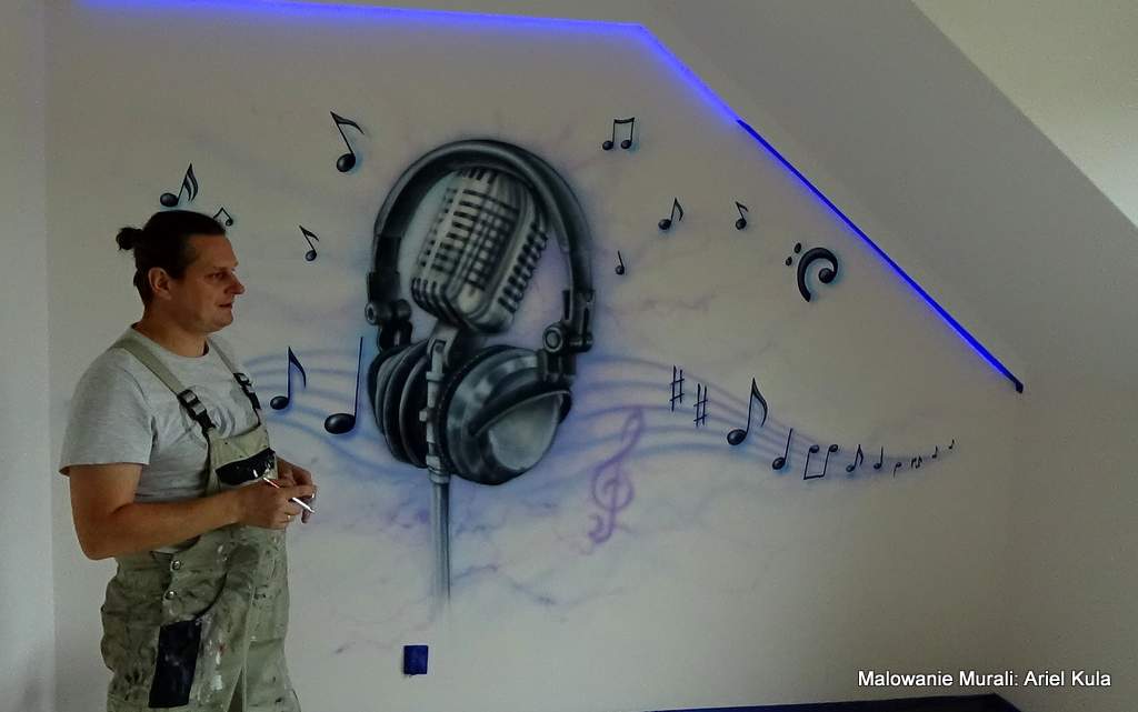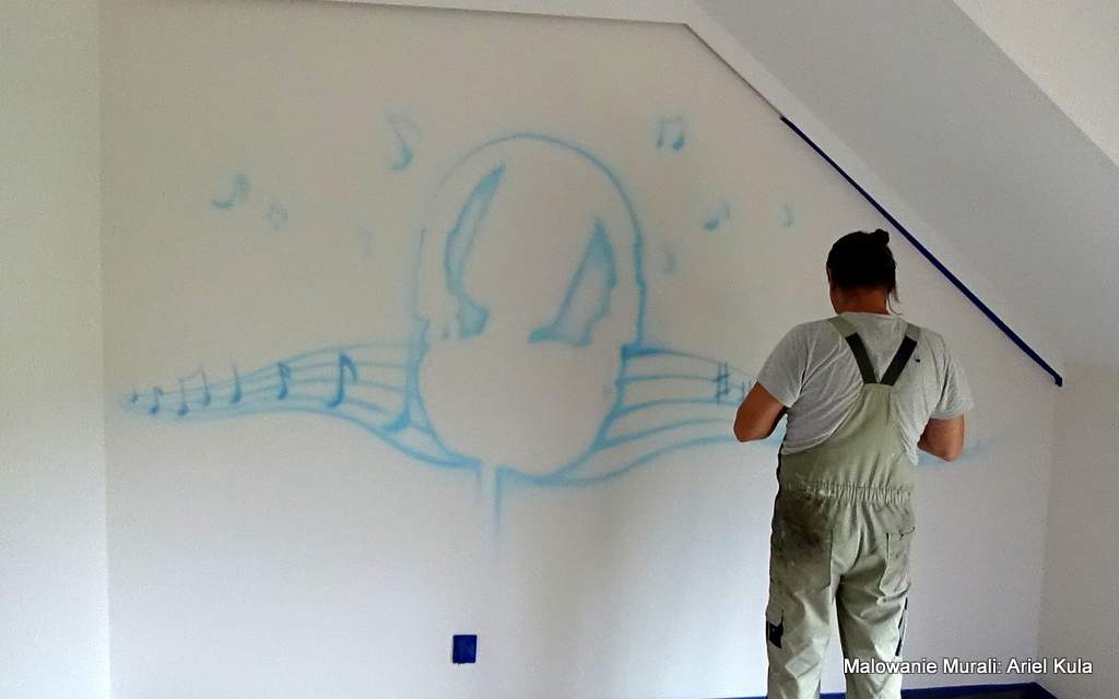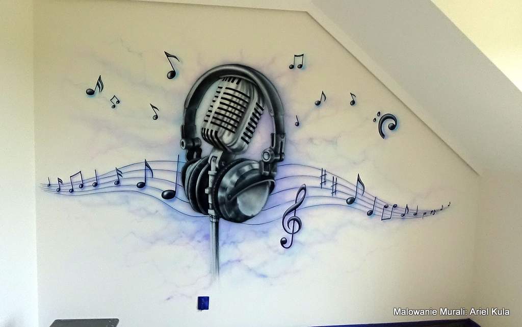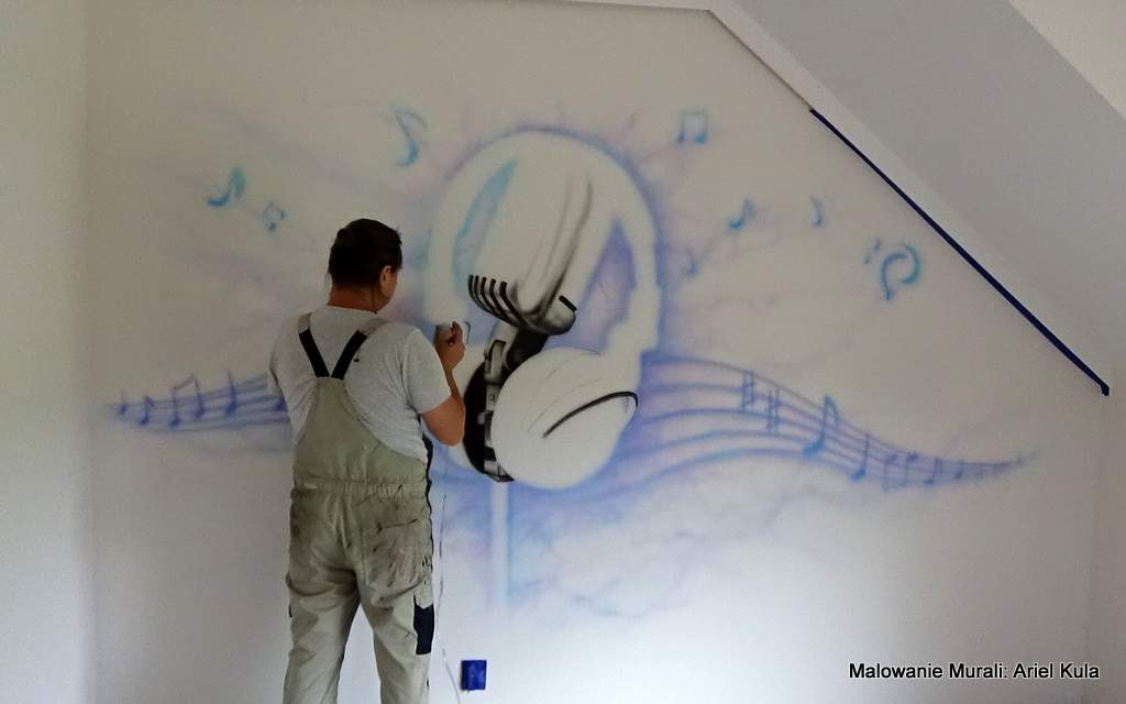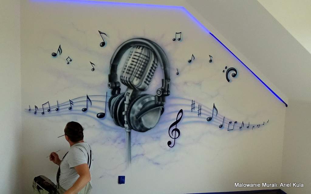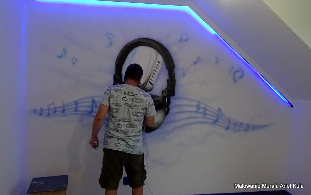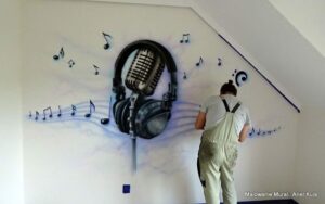 Galeria zdjęć z malowania w pokoju młodzieżowym – mural muzyczny: