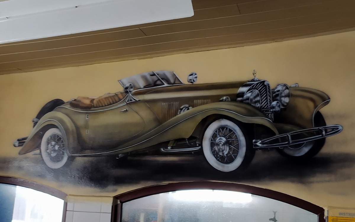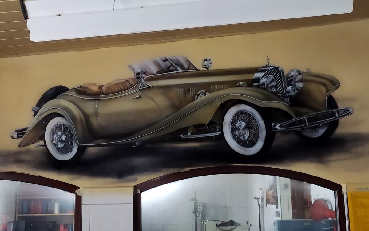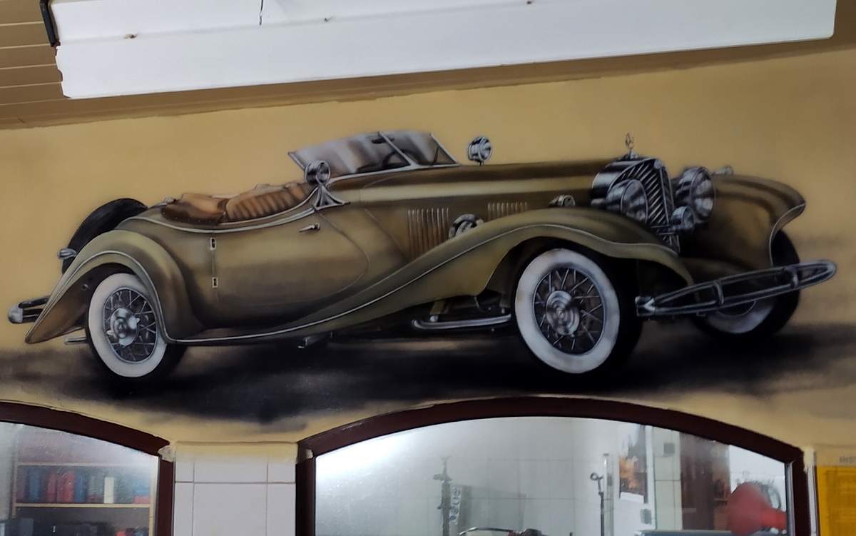 To malowidło to coś więcej niż tylko dekoracja. To swoisty hołd dla dawnego rzemiosła. Obraz przywołuje nostalgię i uświadamia nam, jak ogromną drogę przeszła technologia. Przypomina o czasach, gdy samochody były projektowane z niezwykłą dbałością o detale, a praca mechanika była czystym rzemiosłem artystycznym.