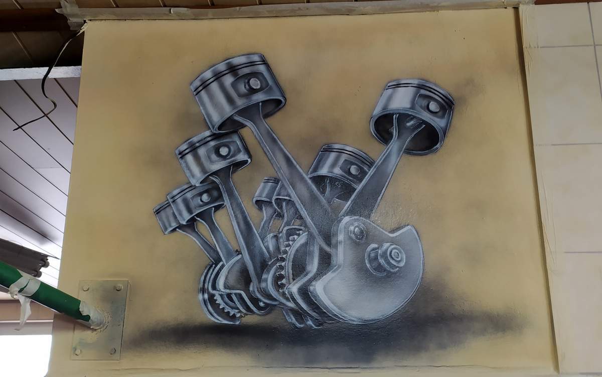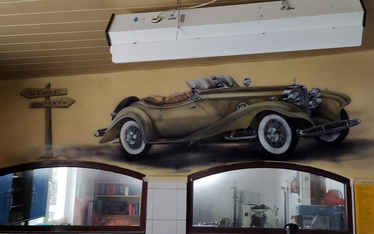 Mural w warsztacie samochodowym